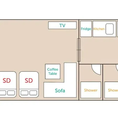 **The accommodations at T-Home2 1F feature a thoughtfully designed bedroom, complete with air conditioning and a flat-screen TV, ensuring relaxation after a day of adventure.** Guests will appreciate the well-equipped kitchen, which boasts a fridge and microwave, allowing for effortless meal preparation. The spacious bathroom adds a touch of luxury with its modern shower, free toiletries, and convenient washing machine, making longer stays a breeze.